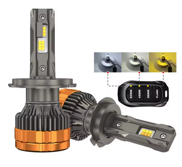 Tyto žárovky jsou přepínatelné mezi 3 barvani. Studená bílá 6000K, teplá bílá 4300K a žlutá 3000K, K žárovkám je dálkový ovladač.